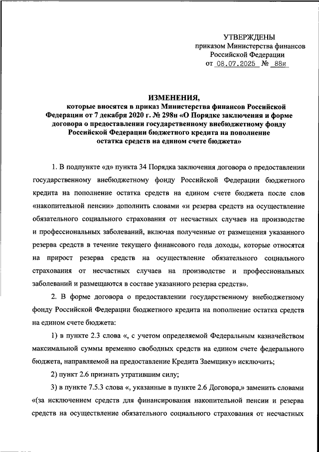 ПРИКАЗ Минфина РФ от 08.07.2025 N 88н
