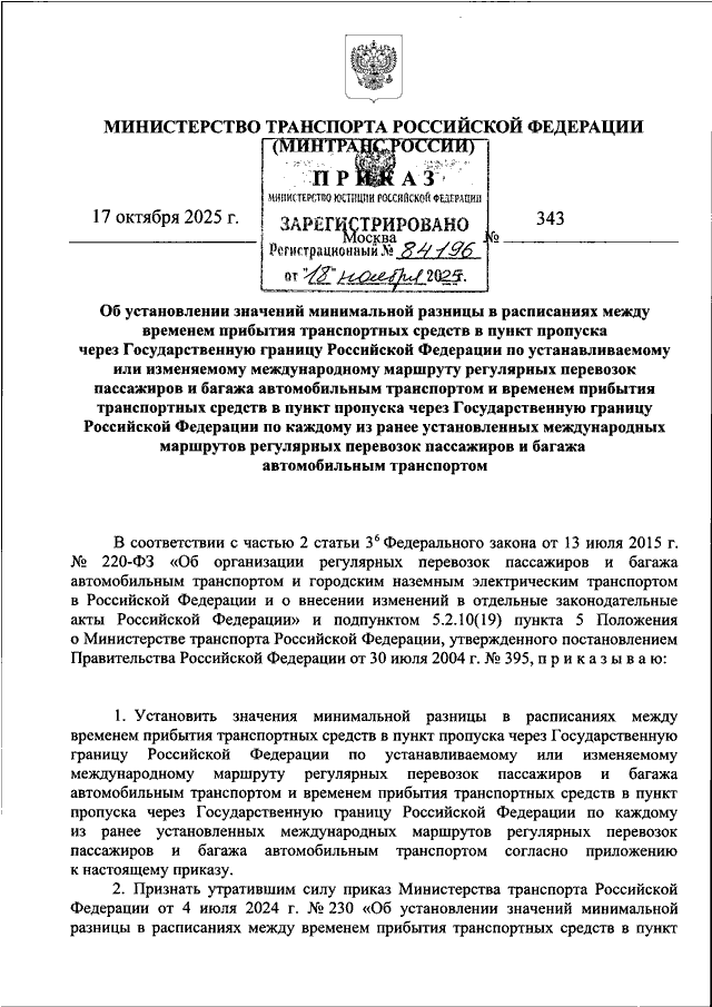 ПРИКАЗ Минтранса РФ от 17.10.2025 N 343