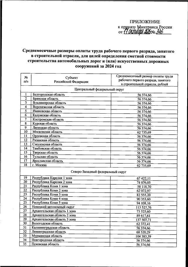 "ОБ УСТАНОВЛЕНИИ СРЕДНЕМЕСЯЧНЫХ РАЗМЕРОВ ОПЛАТЫ ТРУДА РАБОЧЕГО ПЕРВОГО РАЗРЯДА, ЗАНЯТОГО В СТРОИТЕЛЬНОЙ ОТРАСЛИ, ДЛЯ ЦЕЛЕЙ ОПРЕДЕЛЕНИЯ СМЕТНОЙ СТОИМОСТИ СТРОИТЕЛЬСТВА АВТОМОБИЛЬНЫХ ДОРОГ И (ИЛИ) ИСКУССТВЕННЫХ ДОРОЖНЫХ СООРУЖЕНИЙ ЗА 2024 ГОД"
