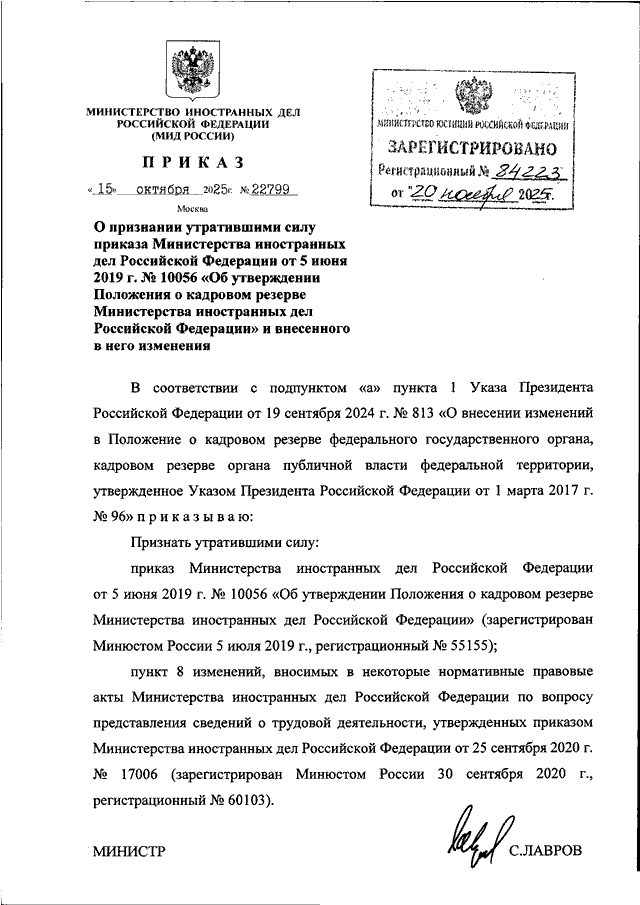 ПРИКАЗ МИД РФ от 15.10.2025 N 22799