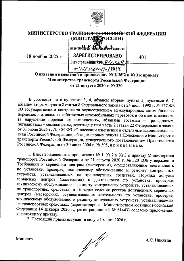 ПРИКАЗ Минтранса РФ от 18.11.2025 N 401