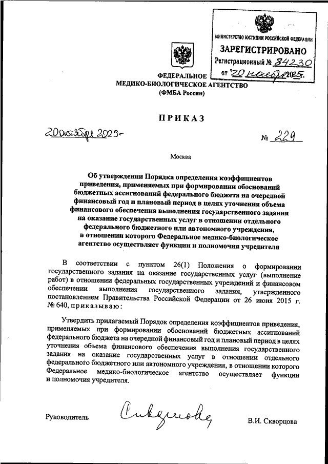 ПРИКАЗ ФМБА РФ от 20.10.2025 N 229