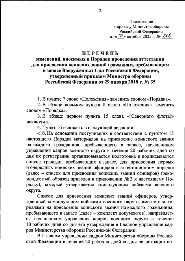 ПРИКАЗ Минобороны РФ от 20.10.2025 N 648