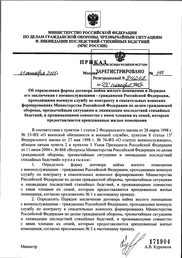 ПРИКАЗ МЧС РФ от 21.10.2025 N 945