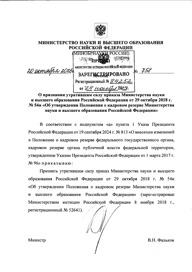 ПРИКАЗ Минобрнауки РФ от 20.10.2025 N 758