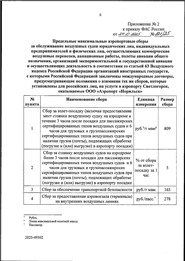 "ОБ УТВЕРЖДЕНИИ ПРЕДЕЛЬНЫХ МАКСИМАЛЬНЫХ АЭРОПОРТОВЫХ СБОРОВ И ТАРИФОВ (АЭРОПОРТОВЫХ СБОРОВ) ЗА ОБСЛУЖИВАНИЕ ВОЗДУШНЫХ СУДОВ ЮРИДИЧЕСКИХ ЛИЦ, ИНДИВИДУАЛЬНЫХ ПРЕДПРИНИМАТЕЛЕЙ И ФИЗИЧЕСКИХ ЛИЦ, ОСУЩЕСТВЛЯЮЩИХ КОММЕРЧЕСКИЕ ВОЗДУШНЫЕ ПЕРЕВОЗКИ, АВИАЦИОННЫЕ РАБОТЫ, ПОЛЕТЫ АВИАЦИИ ОБЩЕГО НАЗНАЧЕНИЯ, ОРГАНИЗАЦИЙ ЭКСПЕРИМЕНТАЛЬНОЙ И ГОСУДАРСТВЕННОЙ АВИАЦИИ И ОСУЩЕСТВЛЯЮЩИХ ДЕЯТЕЛЬНОСТЬ В СООТВЕТСТВИИ СО СТАТЬЕЙ 63 ВОЗДУШНОГО КОДЕКСА РОССИЙСКОЙ ФЕДЕРАЦИИ ОРГАНИЗАЦИЙ ИНОСТРАННЫХ ГОСУДАРСТВ, С КОТОРЫМИ РОССИЙСКОЙ ФЕДЕРАЦИЕЙ ЗАКЛЮЧЕНЫ МЕЖДУНАРОДНЫЕ ДОГОВОРЫ, ПРЕДУСМАТРИВАЮЩИЕ ПОЛОЖЕНИЯ О ВЗИМАНИИ ТЕХ ЖЕ СБОРОВ И ТАРИФОВ, КОТОРЫЕ УСТАНОВЛЕНЫ ДЛЯ РОССИЙСКИХ ЛИЦ, НА УСЛУГИ В АЭРОПОРТАХ НОРИЛЬСК (АЛЫКЕЛЬ) И СВЕТЛОГОРСК, ОКАЗЫВАЕМЫЕ ООО "АЭРОПОРТ "НОРИЛЬСК"