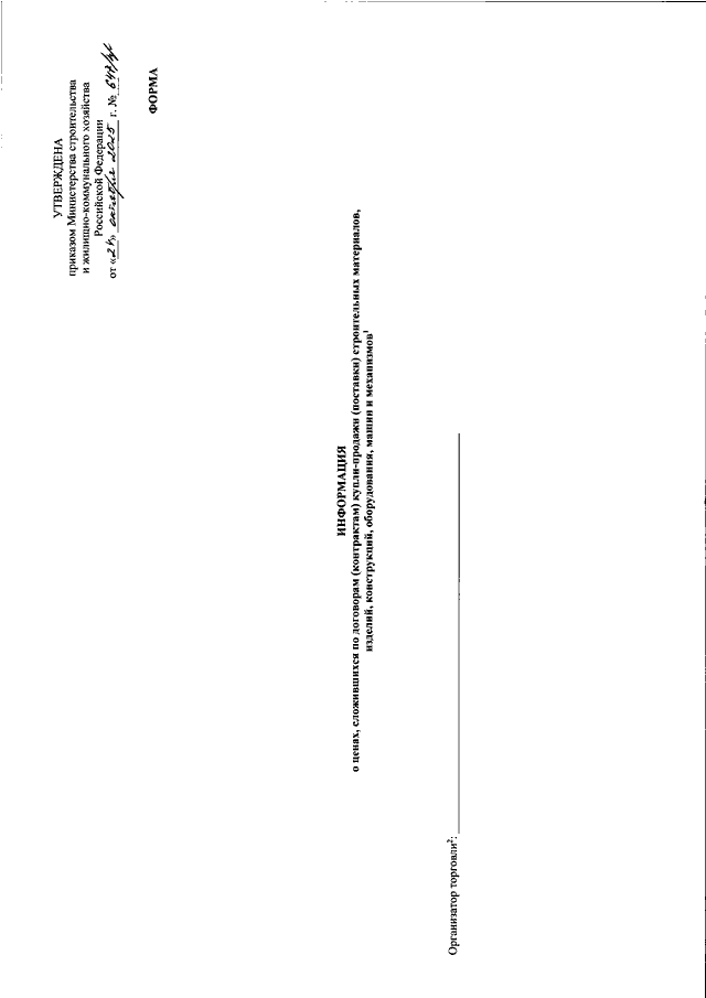 "ОБ УТВЕРЖДЕНИИ ФОРМЫ ПРЕДОСТАВЛЕНИЯ ОРГАНИЗАТОРОМ ТОРГОВЛИ ИНФОРМАЦИИ О ЦЕНАХ, СЛОЖИВШИХСЯ ПО ДОГОВОРАМ (КОНТРАКТАМ) КУПЛИ - ПРОДАЖИ (ПОСТАВКИ) СТРОИТЕЛЬНЫХ МАТЕРИАЛОВ, ИЗДЕЛИЙ, КОНСТРУКЦИЙ, ОБОРУДОВАНИЯ, МАШИН И МЕХАНИЗМОВ"
