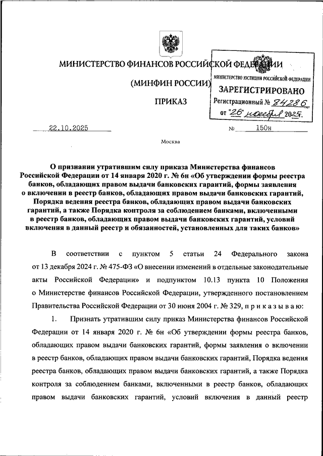 ПРИКАЗ Минфина РФ от 22.10.2025 N 150н