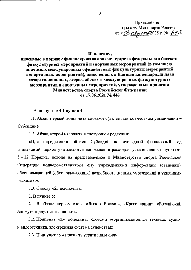 ПРИКАЗ Минспорта РФ от 14.08.2025 N 642