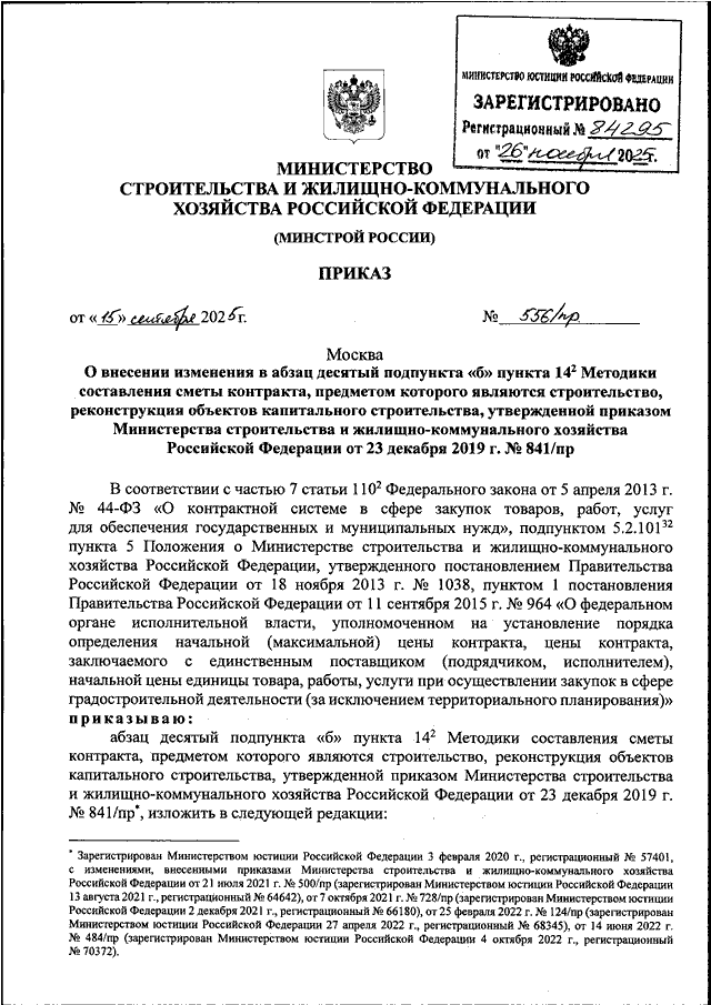 ПРИКАЗ Минстроя РФ от 15.09.2025 N 556/пр