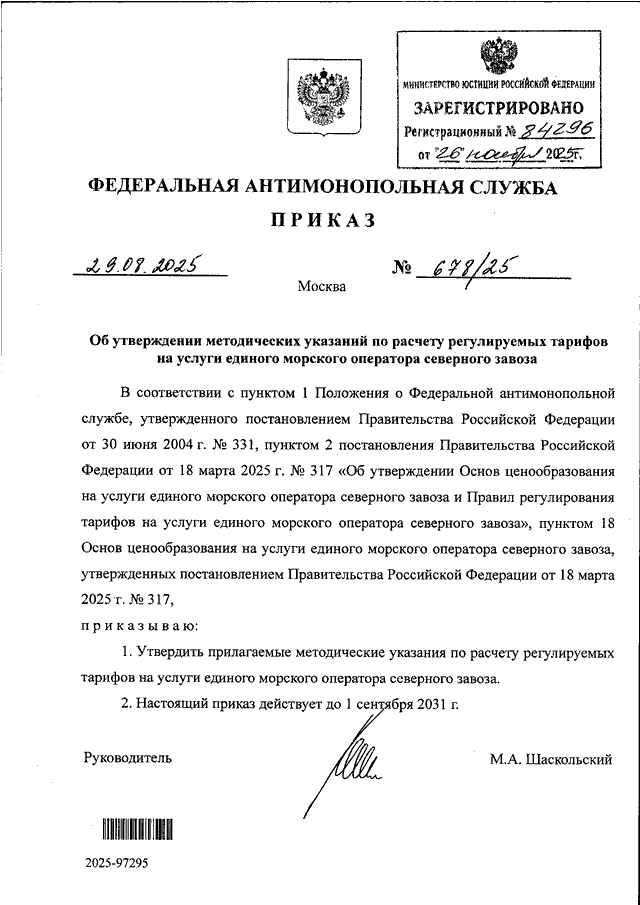 ПРИКАЗ Федеральной антимонопольной службы от 29.08.2025 N 678/25