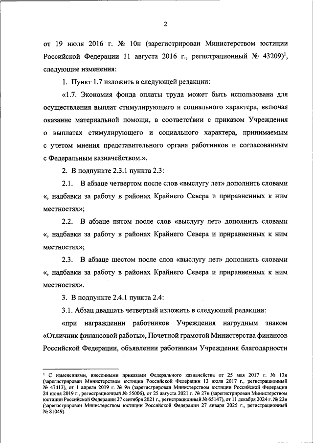 "О ВНЕСЕНИИ ИЗМЕНЕНИЙ В ПОЛОЖЕНИЕ ОБ ОПЛАТЕ ТРУДА РАБОТНИКОВ ФЕДЕРАЛЬНЫХ КАЗЕННЫХ УЧРЕЖДЕНИЙ, НАХОДЯЩИХСЯ В ВЕДЕНИИ ФЕДЕРАЛЬНОГО КАЗНАЧЕЙСТВА, ПО ВИДУ ЭКОНОМИЧЕСКОЙ ДЕЯТЕЛЬНОСТИ ПРАВЛЕНИЕ ЭКСПЛУАТАЦИЕЙ НЕЖИЛОГО ФОНДА", УТВЕРЖДЕННОЕ ПРИКАЗОМ ФЕДЕРАЛЬНОГО КАЗНАЧЕЙСТВА ОТ 19 ИЮЛЯ 2016 Г. N 10Н"