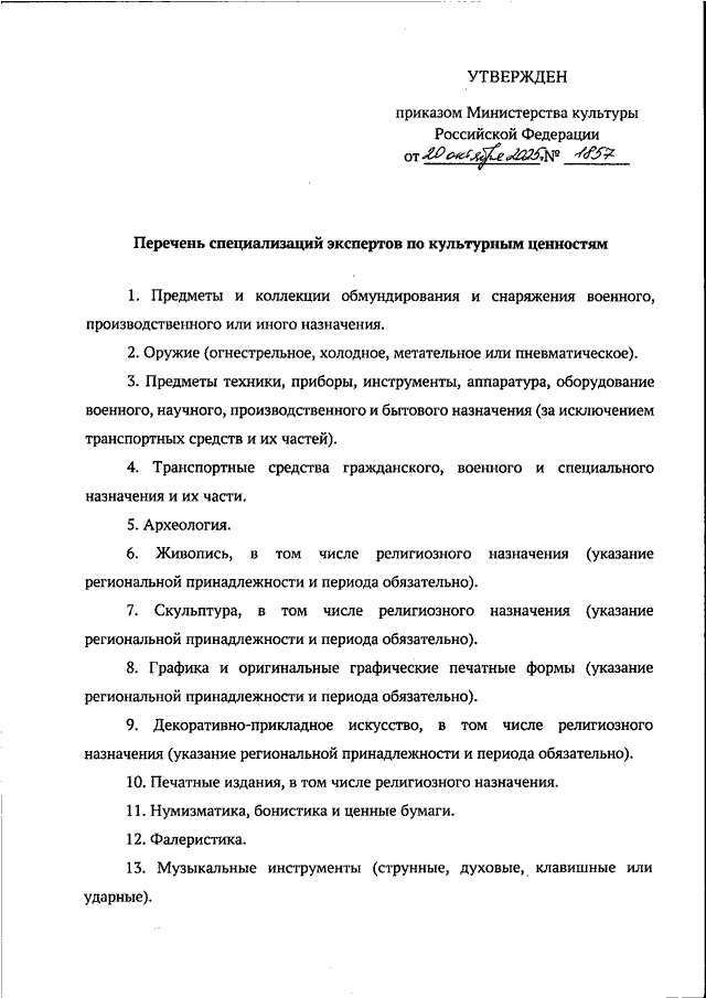 ПРИКАЗ Минкультуры РФ от 20.10.2025 N 1857