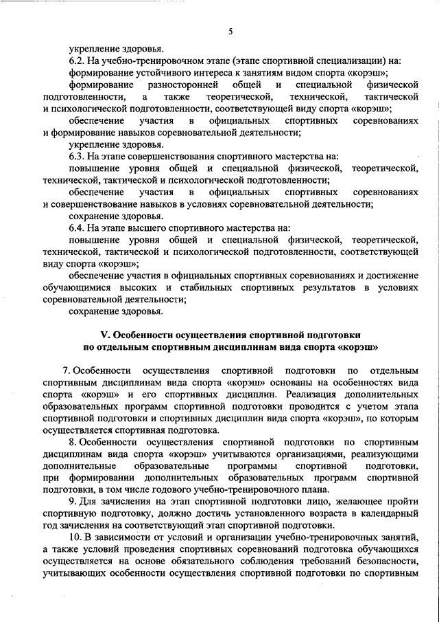 "ОБ УТВЕРЖДЕНИИ ФЕДЕРАЛЬНОГО СТАНДАРТА СПОРТИВНОЙ ПОДГОТОВКИ ПО ВИДУ СПОРТА "КОРЭШ"