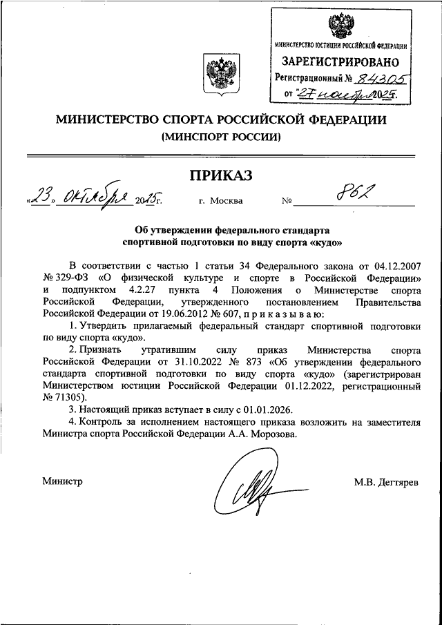 ПРИКАЗ Минспорта РФ от 23.10.2025 N 862