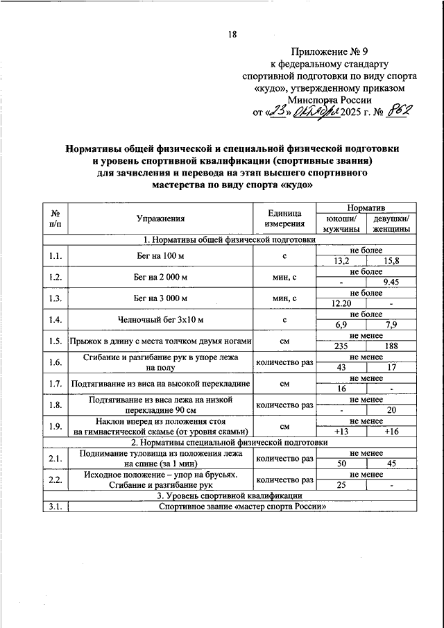 ПРИКАЗ Минспорта РФ от 23.10.2025 N 862