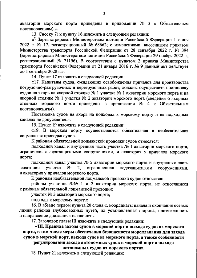"О ВНЕСЕНИИ ИЗМЕНЕНИЙ В ОБЯЗАТЕЛЬНЫЕ ПОСТАНОВЛЕНИЯ В МОРСКОМ ПОРТУ САБЕТТА, УТВЕРЖДЕННЫЕ ПРИКАЗОМ МИНИСТЕРСТВА ТРАНСПОРТА РОССИЙСКОЙ ФЕДЕРАЦИИ ОТ 21 ЯНВАРЯ 2016 Г. N 9"