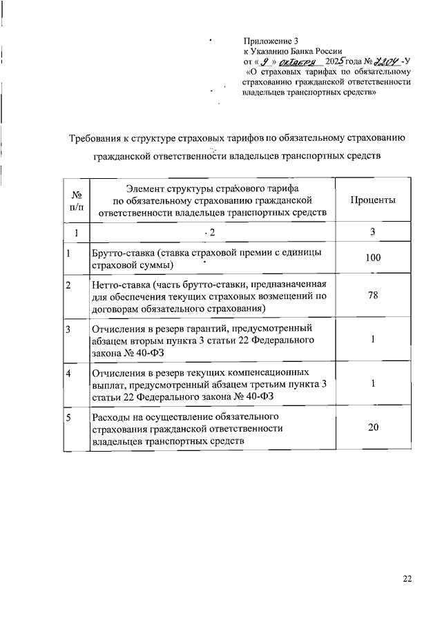 "О СТРАХОВЫХ ТАРИФАХ ПО ОБЯЗАТЕЛЬНОМУ СТРАХОВАНИЮ ГРАЖДАНСКОЙ ОТВЕТСТВЕННОСТИ ВЛАДЕЛЬЦЕВ ТРАНСПОРТНЫХ СРЕДСТВ"