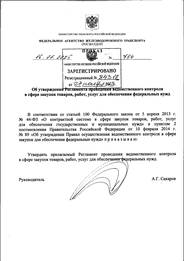 ПРИКАЗ Росжелдора от 16.07.2025 N 764