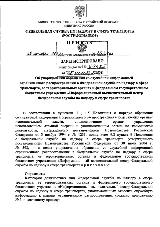 ПРИКАЗ Ространснадзора от 29.09.2025 N ВГ-338фс