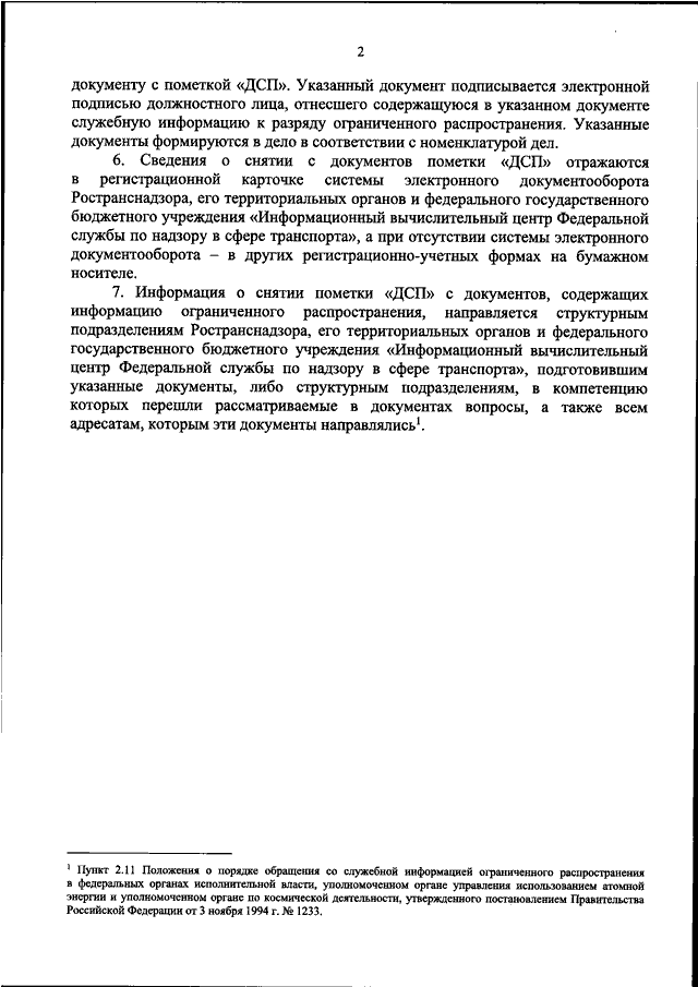 "ОБ УПОРЯДОЧЕНИИ ОБРАЩЕНИЯ СО СЛУЖЕБНОЙ ИНФОРМАЦИЕЙ ОГРАНИЧЕННОГО РАСПРОСТРАНЕНИЯ В ФЕДЕРАЛЬНОЙ СЛУЖБЕ ПО НАДЗОРУ В СФЕРЕ ТРАНСПОРТА, ЕЕ ТЕРРИТОРИАЛЬНЫХ ОРГАНАХ И ФЕДЕРАЛЬНОМ ГОСУДАРСТВЕННОМ БЮДЖЕТНОМ УЧРЕЖДЕНИИ "ИНФОРМАЦИОННЫЙ ВЫЧИСЛИТЕЛЬНЫЙ ЦЕНТР ФЕДЕРАЛЬНОЙ СЛУЖБЫ ПО НАДЗОРУ В СФЕРЕ ТРАНСПОРТА"