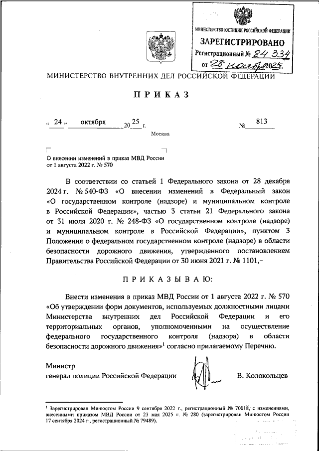 ПРИКАЗ МВД РФ от 24.10.2025 N 813