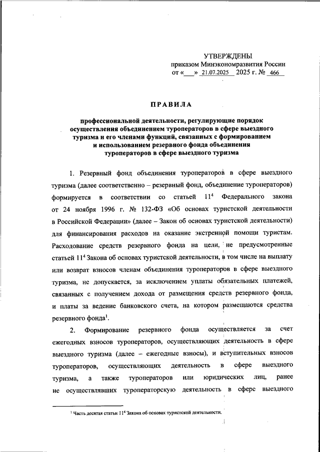 ПРИКАЗ Минэкономразвития РФ от 21.07.2025 N 466