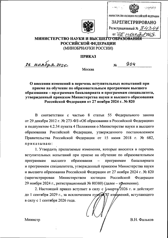 ПРИКАЗ Минобрнауки РФ от 26.11.2025 N 904