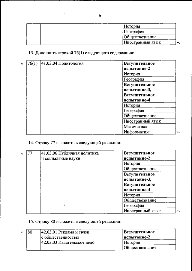 "О ВНЕСЕНИИ ИЗМЕНЕНИЙ В ПЕРЕЧЕНЬ ВСТУПИТЕЛЬНЫХ ИСПЫТАНИЙ ПРИ ПРИЕМЕ НА ОБУЧЕНИЕ ПО ОБРАЗОВАТЕЛЬНЫМ ПРОГРАММАМ ВЫСШЕГО ОБРАЗОВАНИЯ - ПРОГРАММАМ БАКАЛАВРИАТА И ПРОГРАММАМ СПЕЦИАЛИТЕТА, УТВЕРЖДЕННЫЙ ПРИКАЗОМ МИНИСТЕРСТВА НАУКИ И ВЫСШЕГО ОБРАЗОВАНИЯ РОССИЙСКОЙ ФЕДЕРАЦИИ ОТ 27 НОЯБРЯ 2024 Г. N 820"