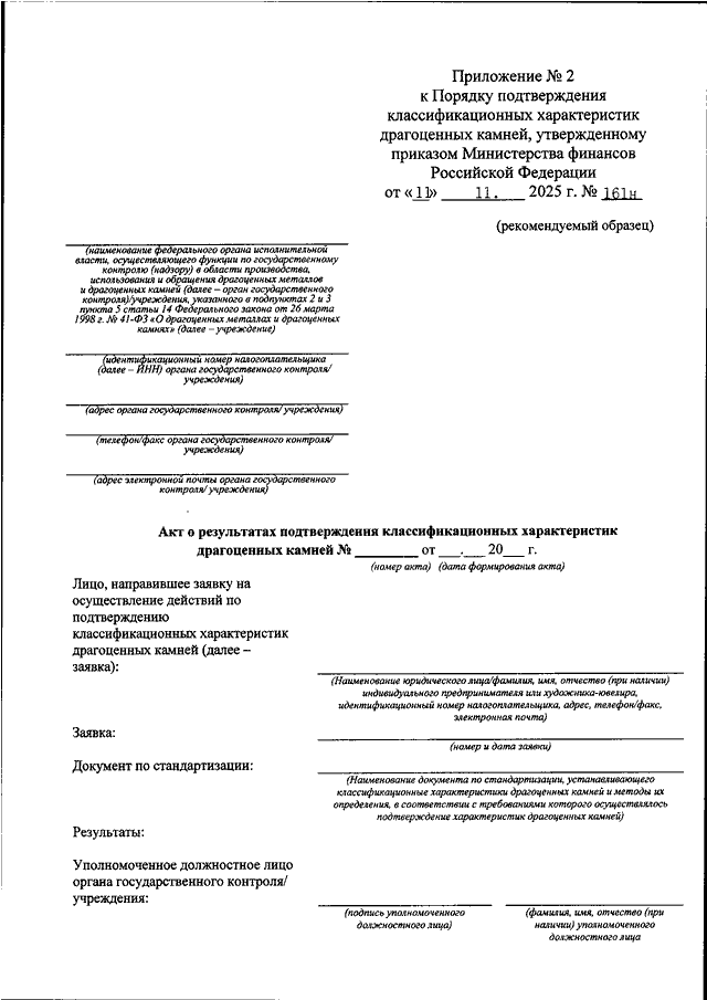 ПРИКАЗ Минфина РФ от 11.11.2025 N 161н