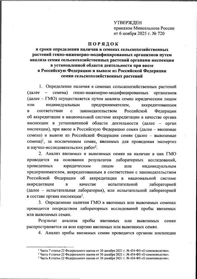 ПРИКАЗ Минсельхоза РФ от 06.11.2025 N 720