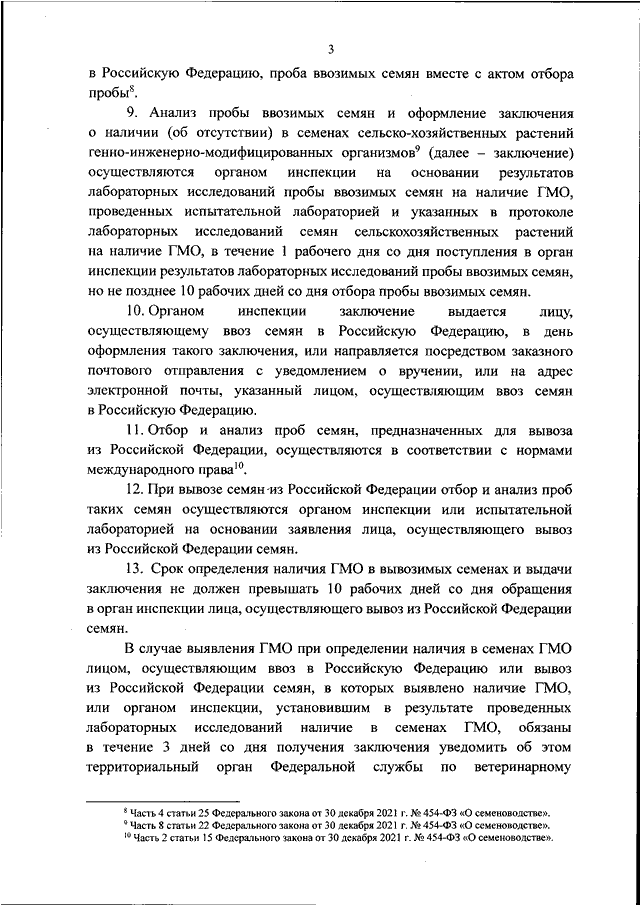 "ОБ УТВЕРЖДЕНИИ ПОРЯДКА И СРОКОВ ОПРЕДЕЛЕНИЯ НАЛИЧИЯ В СЕМЕНАХ СЕЛЬСКОХОЗЯЙСТВЕННЫХ РАСТЕНИЙ ГЕННО - ИНЖЕНЕРНО - МОДИФИЦИРОВАННЫХ ОРГАНИЗМОВ ПУТЕМ АНАЛИЗА СЕМЯН СЕЛЬСКОХОЗЯЙСТВЕННЫХ РАСТЕНИЙ ОРГАНАМИ ИНСПЕКЦИИ В УСТАНОВЛЕННОЙ ОБЛАСТИ ДЕЯТЕЛЬНОСТИ ПРИ ВВОЗЕ В РОССИЙСКУЮ ФЕДЕРАЦИЮ И ВЫВОЗЕ ИЗ РОССИЙСКОЙ ФЕДЕРАЦИИ СЕМЯН СЕЛЬСКОХОЗЯЙСТВЕННЫХ РАСТЕНИЙ"