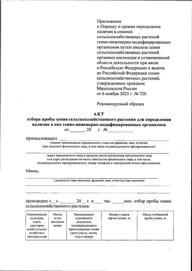 ПРИКАЗ Минсельхоза РФ от 06.11.2025 N 720