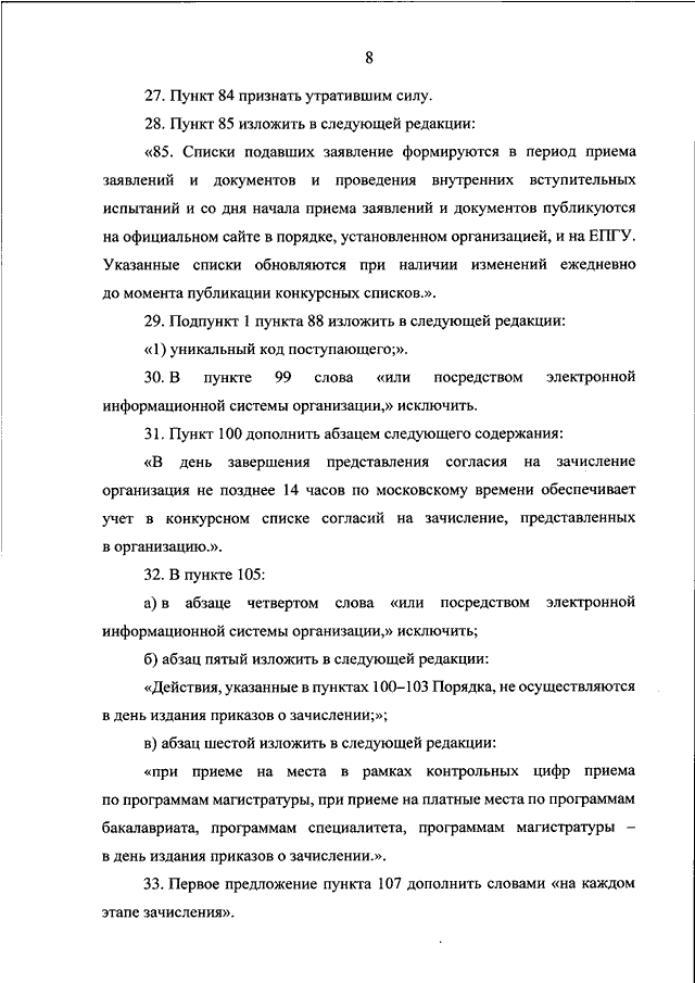 "О ВНЕСЕНИИ ИЗМЕНЕНИЙ В ПОРЯДОК ПРИЕМА НА ОБУЧЕНИЕ ПО ОБРАЗОВАТЕЛЬНЫМ ПРОГРАММАМ ВЫСШЕГО ОБРАЗОВАНИЯ - ПРОГРАММАМ БАКАЛАВРИАТА, ПРОГРАММАМ СПЕЦИАЛИТЕТА, ПРОГРАММАМ МАГИСТРАТУРЫ, УТВЕРЖДЕННЫЙ ПРИКАЗОМ МИНИСТЕРСТВА НАУКИ И ВЫСШЕГО ОБРАЗОВАНИЯ РОССИЙСКОЙ ФЕДЕРАЦИИ ОТ 27 НОЯБРЯ 2024 Г. N 821"