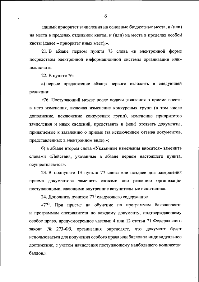 "О ВНЕСЕНИИ ИЗМЕНЕНИЙ В ПОРЯДОК ПРИЕМА НА ОБУЧЕНИЕ ПО ОБРАЗОВАТЕЛЬНЫМ ПРОГРАММАМ ВЫСШЕГО ОБРАЗОВАНИЯ - ПРОГРАММАМ БАКАЛАВРИАТА, ПРОГРАММАМ СПЕЦИАЛИТЕТА, ПРОГРАММАМ МАГИСТРАТУРЫ, УТВЕРЖДЕННЫЙ ПРИКАЗОМ МИНИСТЕРСТВА НАУКИ И ВЫСШЕГО ОБРАЗОВАНИЯ РОССИЙСКОЙ ФЕДЕРАЦИИ ОТ 27 НОЯБРЯ 2024 Г. N 821"