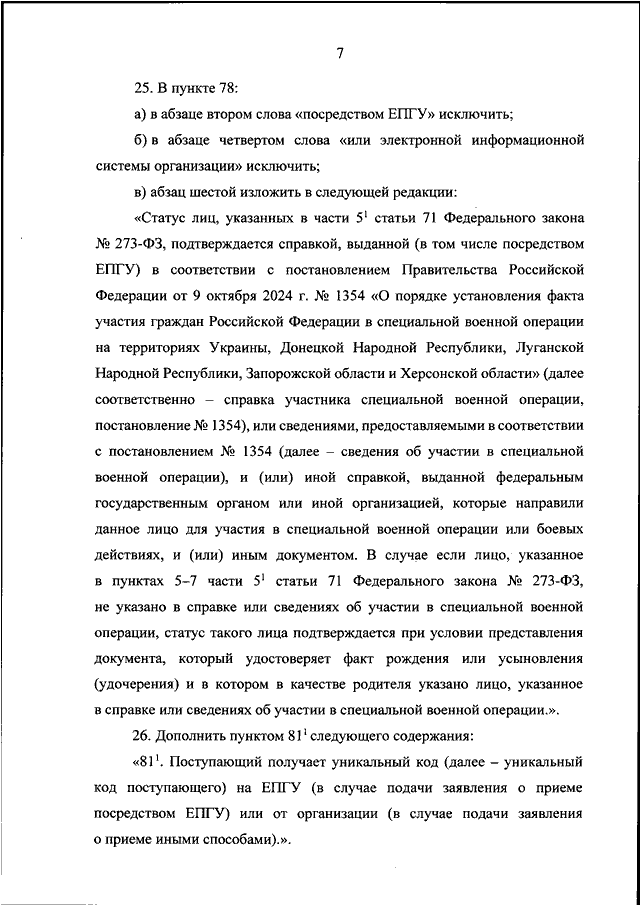 "О ВНЕСЕНИИ ИЗМЕНЕНИЙ В ПОРЯДОК ПРИЕМА НА ОБУЧЕНИЕ ПО ОБРАЗОВАТЕЛЬНЫМ ПРОГРАММАМ ВЫСШЕГО ОБРАЗОВАНИЯ - ПРОГРАММАМ БАКАЛАВРИАТА, ПРОГРАММАМ СПЕЦИАЛИТЕТА, ПРОГРАММАМ МАГИСТРАТУРЫ, УТВЕРЖДЕННЫЙ ПРИКАЗОМ МИНИСТЕРСТВА НАУКИ И ВЫСШЕГО ОБРАЗОВАНИЯ РОССИЙСКОЙ ФЕДЕРАЦИИ ОТ 27 НОЯБРЯ 2024 Г. N 821"