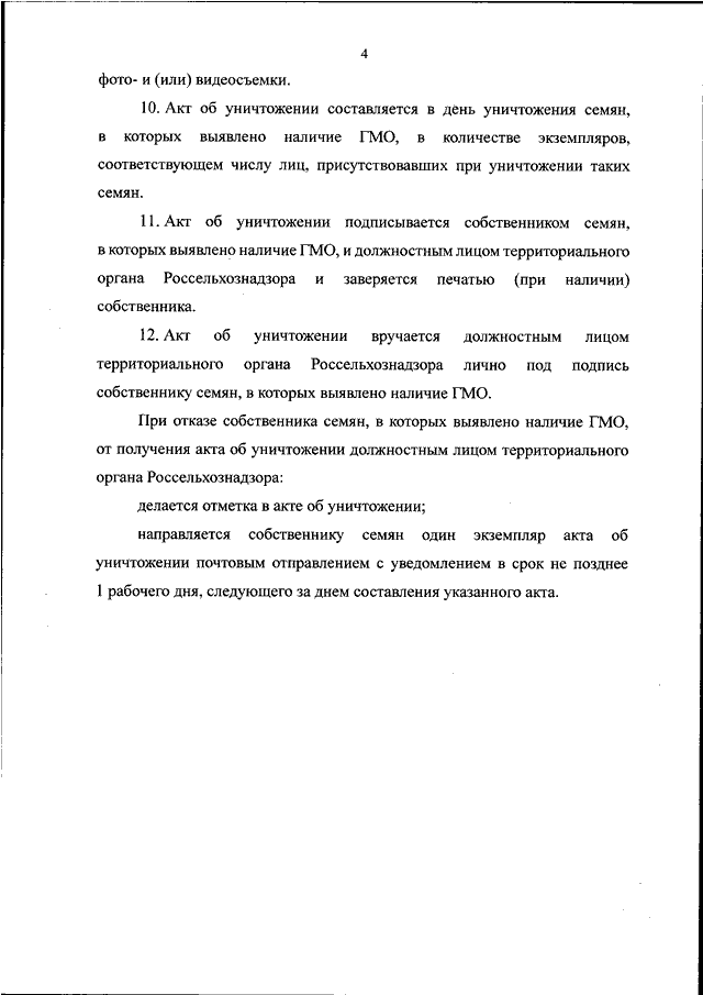 "ОБ УТВЕРЖДЕНИИ ПОРЯДКА УНИЧТОЖЕНИЯ ВВОЗИМЫХ В РОССИЙСКУЮ ФЕДЕРАЦИЮ И ВЫВОЗИМЫХ ИЗ РОССИЙСКОЙ ФЕДЕРАЦИИ СЕМЯН СЕЛЬСКОХОЗЯЙСТВЕННЫХ РАСТЕНИЙ, В КОТОРЫХ ВЫЯВЛЕНО НАЛИЧИЕ ГЕННО - ИНЖЕНЕРНО - МОДИФИЦИРОВАННЫХ ОРГАНИЗМОВ, СОБСТВЕННИКОМ И (ИЛИ) ВЛАДЕЛЬЦЕМ ТАКИХ СЕМЯН СЕЛЬСКОХОЗЯЙСТВЕННЫХ РАСТЕНИЙ И ФОРМЫ ЗАКЛЮЧЕНИЯ О НАЛИЧИИ (ОБ ОТСУТСТВИИ) В СЕМЕНАХ СЕЛЬСКОХОЗЯЙСТВЕННЫХ РАСТЕНИЙ ГЕННО - ИНЖЕНЕРНО - МОДИФИЦИРОВАННЫХ ОРГАНИЗМОВ"