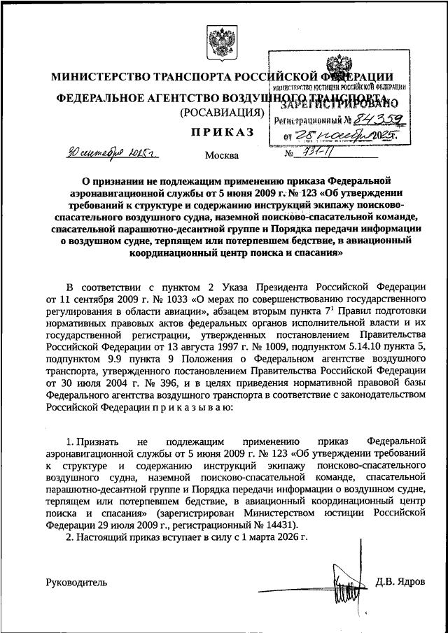 ПРИКАЗ Росавиации от 30.09.2025 N 731-П