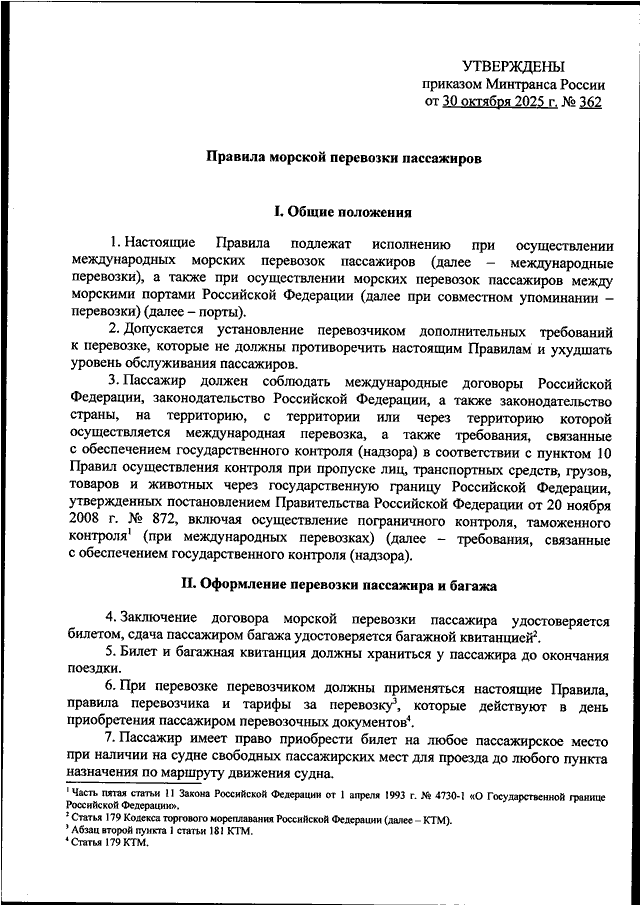 ПРИКАЗ Минтранса РФ от 30.10.2025 N 362