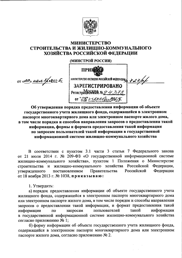 ПРИКАЗ Минстроя РФ от 20.11.2025 N 727/пр