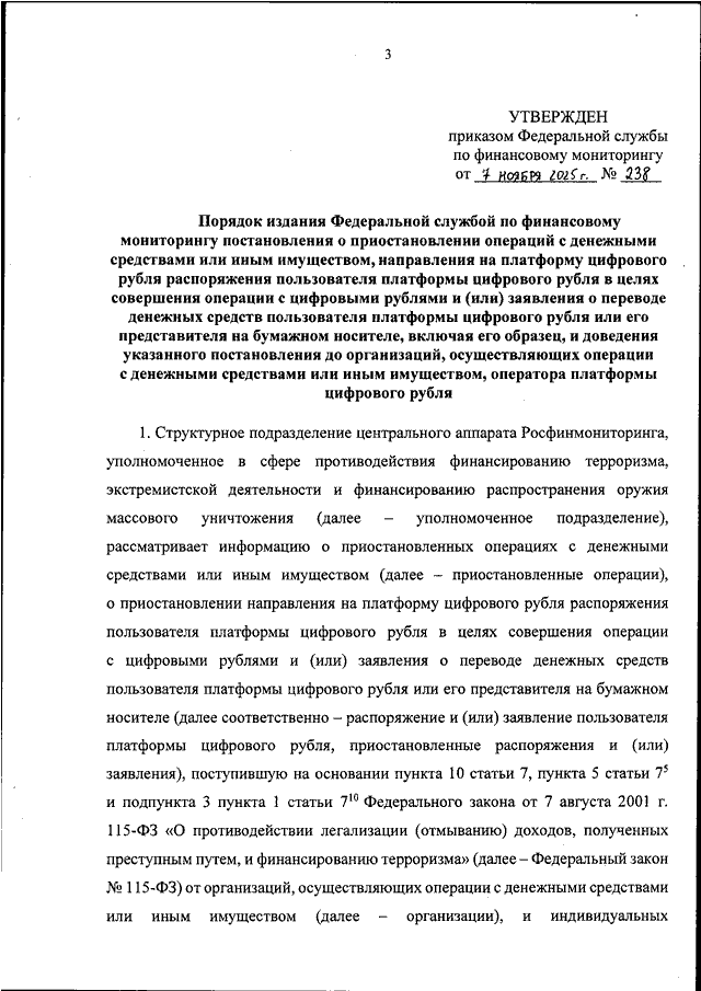 ПРИКАЗ Росфинмониторинга от 07.11.2025 N 238