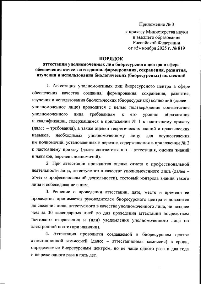 ПРИКАЗ Минобрнауки РФ от 05.11.2025 N 819