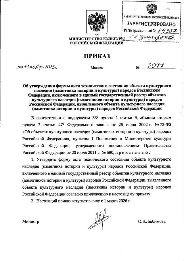 ПРИКАЗ Минкультуры РФ от 14.11.2025 N 2077