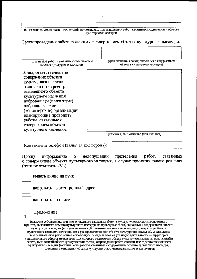 "ОБ УТВЕРЖДЕНИИ ФОРМЫ УВЕДОМЛЕНИЯ О ПЛАНИРУЕМОМ ПРОВЕДЕНИИ РАБОТ, СВЯЗАННЫХ С СОДЕРЖАНИЕМ ОБЪЕКТА КУЛЬТУРНОГО НАСЛЕДИЯ (ПАМЯТНИКА ИСТОРИИ И КУЛЬТУРЫ) НАРОДОВ РОССИЙСКОЙ ФЕДЕРАЦИИ, ВКЛЮЧЕННОГО В ЕДИНЫЙ ГОСУДАРСТВЕННЫЙ РЕЕСТР ОБЪЕКТОВ КУЛЬТУРНОГО НАСЛЕДИЯ (ПАМЯТНИКОВ ИСТОРИИ И КУЛЬТУРЫ) НАРОДОВ РОССИЙСКОЙ ФЕДЕРАЦИИ, ВЫЯВЛЕННОГО ОБЪЕКТА КУЛЬТУРНОГО НАСЛЕДИЯ (ПАМЯТНИКА ИСТОРИИ И КУЛЬТУРЫ) НАРОДОВ РОССИЙСКОЙ ФЕДЕРАЦИИ, ПОРЯДКА ЕГО ПОДАЧИ, А ТАКЖЕ ПОРЯДКА НАПРАВЛЕНИЯ ОРГАНОМ ОХРАНЫ ОБЪЕКТОВ КУЛЬТУРНОГО НАСЛЕДИЯ ИНФОРМАЦИИ О НЕДОПУЩЕНИИ ПРОВЕДЕНИЯ РАБОТ, СВЯЗАННЫХ С СОДЕРЖАНИЕМ ОБЪЕКТА КУЛЬТУРНОГО НАСЛЕДИЯ (ПАМЯТНИКА ИСТОРИИ И КУЛЬТУРЫ) НАРОДОВ РОССИЙСКОЙ ФЕДЕРАЦИИ, ВКЛЮЧЕННОГО В ЕДИНЫЙ ГОСУДАРСТВЕННЫЙ РЕЕСТР ОБЪЕКТОВ КУЛЬТУРНОГО НАСЛЕДИЯ (ПАМЯТНИКОВ ИСТОРИИ И КУЛЬТУРЫ) НАРОДОВ РОССИЙСКОЙ ФЕДЕРАЦИИ, ВЫЯВЛЕННОГО ОБЪЕКТА КУЛЬТУРНОГО НАСЛЕДИЯ (ПАМЯТНИКА ИСТОРИИ И КУЛЬТУРЫ) НАРОДОВ РОССИЙСКОЙ ФЕДЕРАЦИИ, УКАЗАННЫХ В УВЕДОМЛЕНИИ О ПЛАНИРУЕМОМ ПРОВЕДЕНИИ РАБОТ, СВЯЗАННЫХ С СОДЕРЖАНИЕМ ОБЪЕКТА КУЛЬТУРНОГО НАСЛЕДИЯ (ПАМЯТНИКА ИСТОРИИ И КУЛЬТУРЫ) НАРОДОВ РОССИЙСКОЙ ФЕДЕРАЦИИ, ВКЛЮЧЕННОГО В ЕДИНЫЙ ГОСУДАРСТВЕННЫЙ РЕЕСТР ОБЪЕКТОВ КУЛЬТУРНОГО НАСЛЕДИЯ (ПАМЯТНИКОВ ИСТОРИИ И КУЛЬТУРЫ) НАРОДОВ РОССИЙСКОЙ ФЕДЕРАЦИИ, ВЫЯВЛЕННОГО ОБЪЕКТА КУЛЬТУРНОГО НАСЛЕДИЯ (ПАМЯТНИКА ИСТОРИИ И КУЛЬТУРЫ) НАРОДОВ РОССИЙСКОЙ ФЕДЕРАЦИИ"