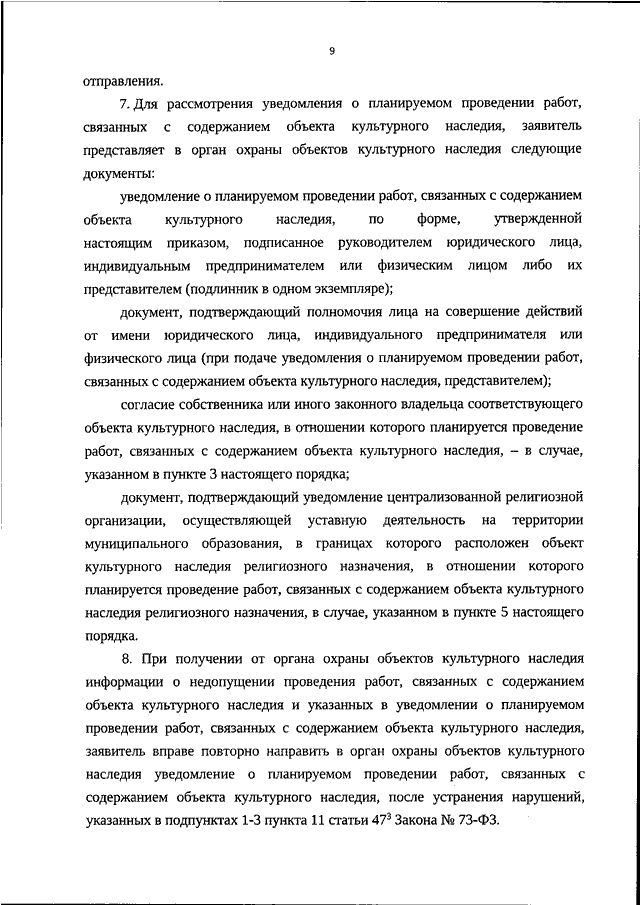 "ОБ УТВЕРЖДЕНИИ ФОРМЫ УВЕДОМЛЕНИЯ О ПЛАНИРУЕМОМ ПРОВЕДЕНИИ РАБОТ, СВЯЗАННЫХ С СОДЕРЖАНИЕМ ОБЪЕКТА КУЛЬТУРНОГО НАСЛЕДИЯ (ПАМЯТНИКА ИСТОРИИ И КУЛЬТУРЫ) НАРОДОВ РОССИЙСКОЙ ФЕДЕРАЦИИ, ВКЛЮЧЕННОГО В ЕДИНЫЙ ГОСУДАРСТВЕННЫЙ РЕЕСТР ОБЪЕКТОВ КУЛЬТУРНОГО НАСЛЕДИЯ (ПАМЯТНИКОВ ИСТОРИИ И КУЛЬТУРЫ) НАРОДОВ РОССИЙСКОЙ ФЕДЕРАЦИИ, ВЫЯВЛЕННОГО ОБЪЕКТА КУЛЬТУРНОГО НАСЛЕДИЯ (ПАМЯТНИКА ИСТОРИИ И КУЛЬТУРЫ) НАРОДОВ РОССИЙСКОЙ ФЕДЕРАЦИИ, ПОРЯДКА ЕГО ПОДАЧИ, А ТАКЖЕ ПОРЯДКА НАПРАВЛЕНИЯ ОРГАНОМ ОХРАНЫ ОБЪЕКТОВ КУЛЬТУРНОГО НАСЛЕДИЯ ИНФОРМАЦИИ О НЕДОПУЩЕНИИ ПРОВЕДЕНИЯ РАБОТ, СВЯЗАННЫХ С СОДЕРЖАНИЕМ ОБЪЕКТА КУЛЬТУРНОГО НАСЛЕДИЯ (ПАМЯТНИКА ИСТОРИИ И КУЛЬТУРЫ) НАРОДОВ РОССИЙСКОЙ ФЕДЕРАЦИИ, ВКЛЮЧЕННОГО В ЕДИНЫЙ ГОСУДАРСТВЕННЫЙ РЕЕСТР ОБЪЕКТОВ КУЛЬТУРНОГО НАСЛЕДИЯ (ПАМЯТНИКОВ ИСТОРИИ И КУЛЬТУРЫ) НАРОДОВ РОССИЙСКОЙ ФЕДЕРАЦИИ, ВЫЯВЛЕННОГО ОБЪЕКТА КУЛЬТУРНОГО НАСЛЕДИЯ (ПАМЯТНИКА ИСТОРИИ И КУЛЬТУРЫ) НАРОДОВ РОССИЙСКОЙ ФЕДЕРАЦИИ, УКАЗАННЫХ В УВЕДОМЛЕНИИ О ПЛАНИРУЕМОМ ПРОВЕДЕНИИ РАБОТ, СВЯЗАННЫХ С СОДЕРЖАНИЕМ ОБЪЕКТА КУЛЬТУРНОГО НАСЛЕДИЯ (ПАМЯТНИКА ИСТОРИИ И КУЛЬТУРЫ) НАРОДОВ РОССИЙСКОЙ ФЕДЕРАЦИИ, ВКЛЮЧЕННОГО В ЕДИНЫЙ ГОСУДАРСТВЕННЫЙ РЕЕСТР ОБЪЕКТОВ КУЛЬТУРНОГО НАСЛЕДИЯ (ПАМЯТНИКОВ ИСТОРИИ И КУЛЬТУРЫ) НАРОДОВ РОССИЙСКОЙ ФЕДЕРАЦИИ, ВЫЯВЛЕННОГО ОБЪЕКТА КУЛЬТУРНОГО НАСЛЕДИЯ (ПАМЯТНИКА ИСТОРИИ И КУЛЬТУРЫ) НАРОДОВ РОССИЙСКОЙ ФЕДЕРАЦИИ"