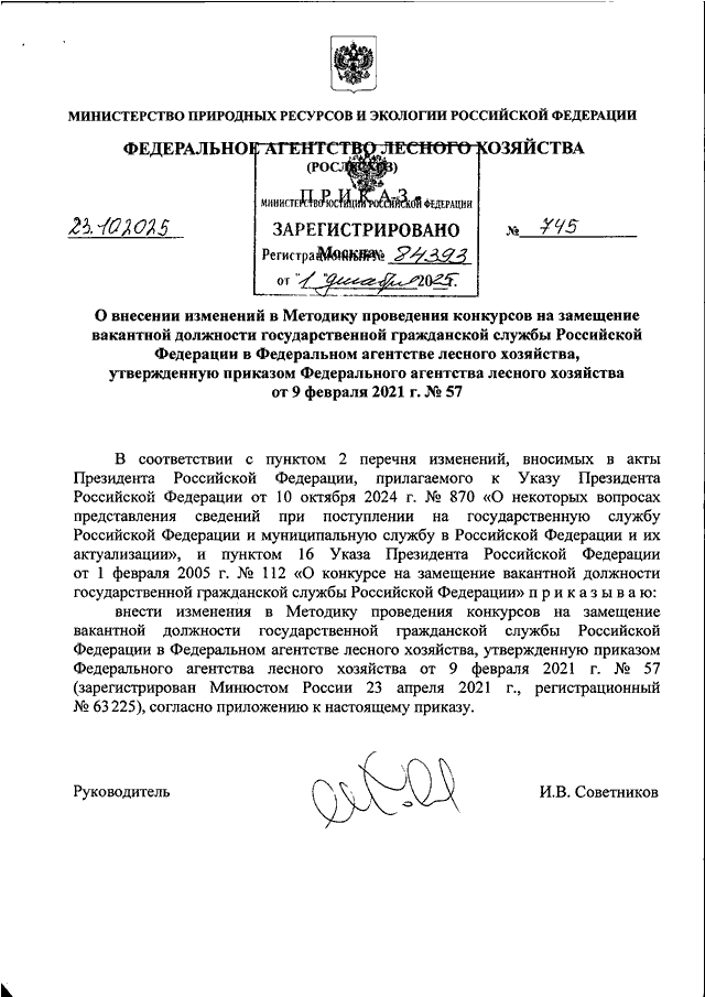 ПРИКАЗ Рослесхоза от 23.10.2025 N 745