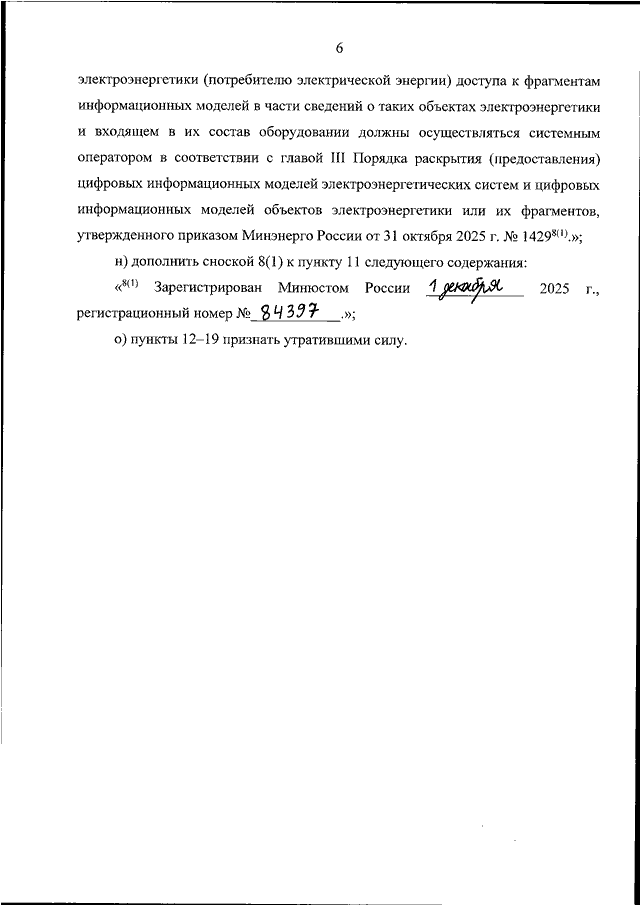 ПРИКАЗ Минэнерго РФ от 31.10.2025 N 1429