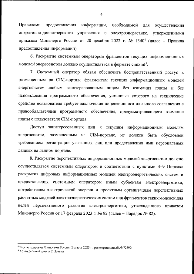 "ОБ УТВЕРЖДЕНИИ ПОРЯДКА РАСКРЫТИЯ (ПРЕДОСТАВЛЕНИЯ) ЦИФРОВЫХ ИНФОРМАЦИОННЫХ МОДЕЛЕЙ ЭЛЕКТРОЭНЕРГЕТИЧЕСКИХ СИСТЕМ И ЦИФРОВЫХ ИНФОРМАЦИОННЫХ МОДЕЛЕЙ ОБЪЕКТОВ ЭЛЕКТРОЭНЕРГЕТИКИ ИЛИ ИХ ФРАГМЕНТОВ И О ВНЕСЕНИИ ИЗМЕНЕНИЙ В ПРИКАЗ МИНЭНЕРГО РОССИИ ОТ 17 ФЕВРАЛЯ 2023 Г. N 82"
