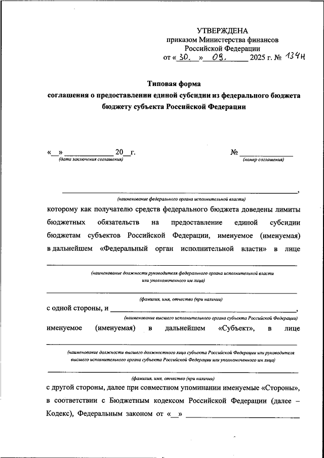 ПРИКАЗ Минфина РФ от 30.09.2025 N 134н