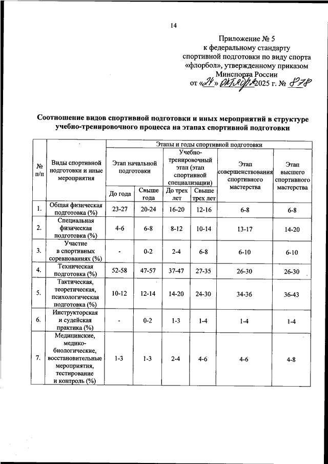 ПРИКАЗ Минспорта РФ от 24.10.2025 N 878